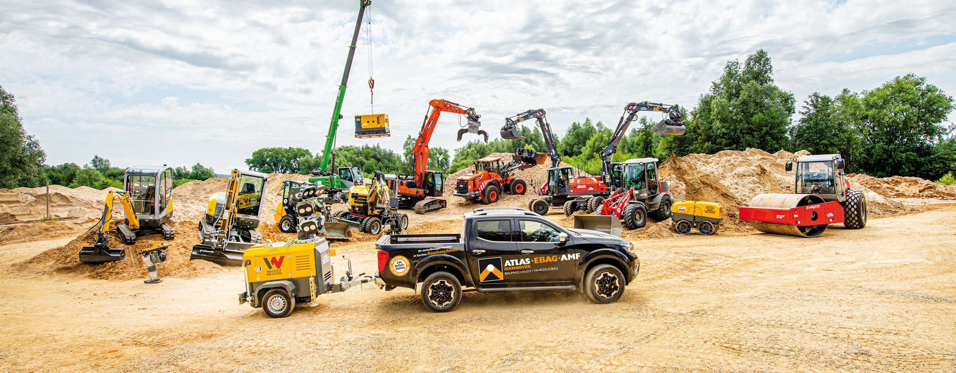ATLAS und EBAG sind spezialisiert auf den Verkauf, die Vermietung und den Service rund um Baumaschinen. Sie bieten eine große Auswahl an neuen und gebrauchten Baumaschinen. Auch der Mietpark versorgt Sie mit allem, was für Ihr Bauvorhaben gebraucht wird – und das immer in Top-Qualität. Dazu bieten wir Ihnen einen Service, mit dem auf Ihrer Baustelle immer alles rund läuft. Und immer meinen wir auch so.